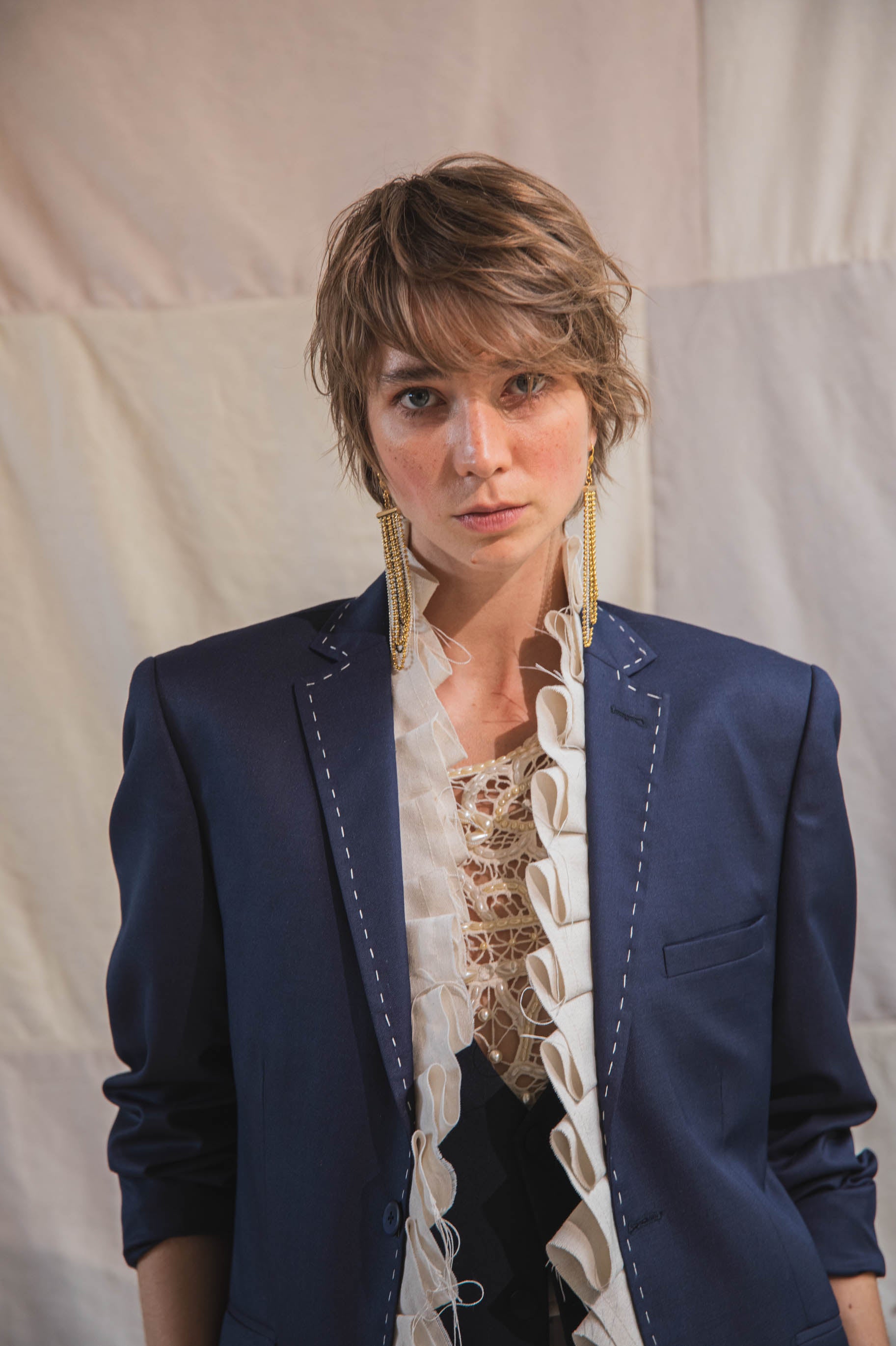 Chaqueta sastre tradicional Alado – Con solapas bordeadas con tela en forma de boleros pequeños decorativos y bastas decorativas bordadas a mano. Un diseño clásico con detalles únicos que resaltan la elegancia artesanal