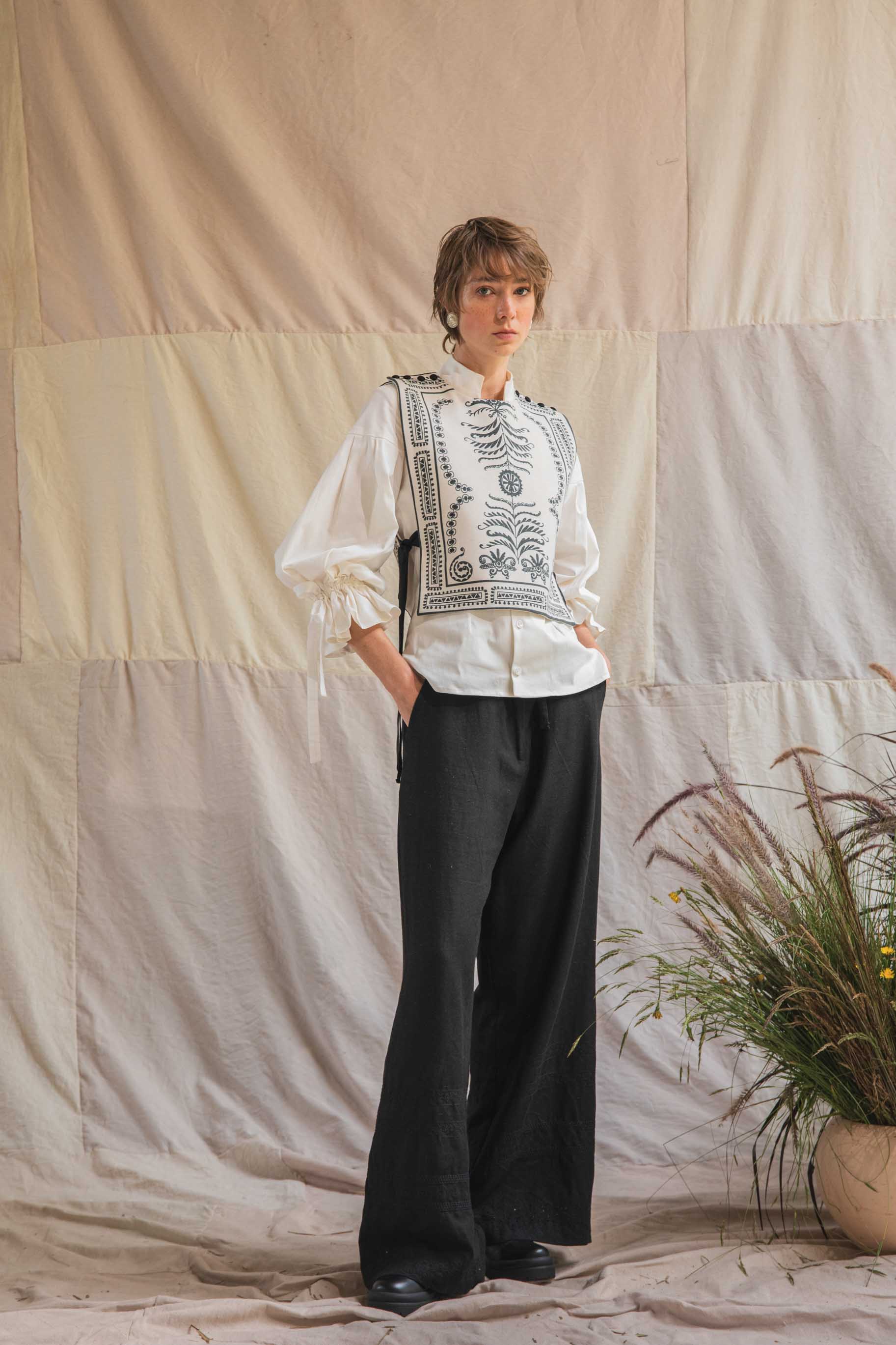 Peto/chaleco de dos piezas forrado, silueta recta, cierre con botones en los hombros y tiras laterales