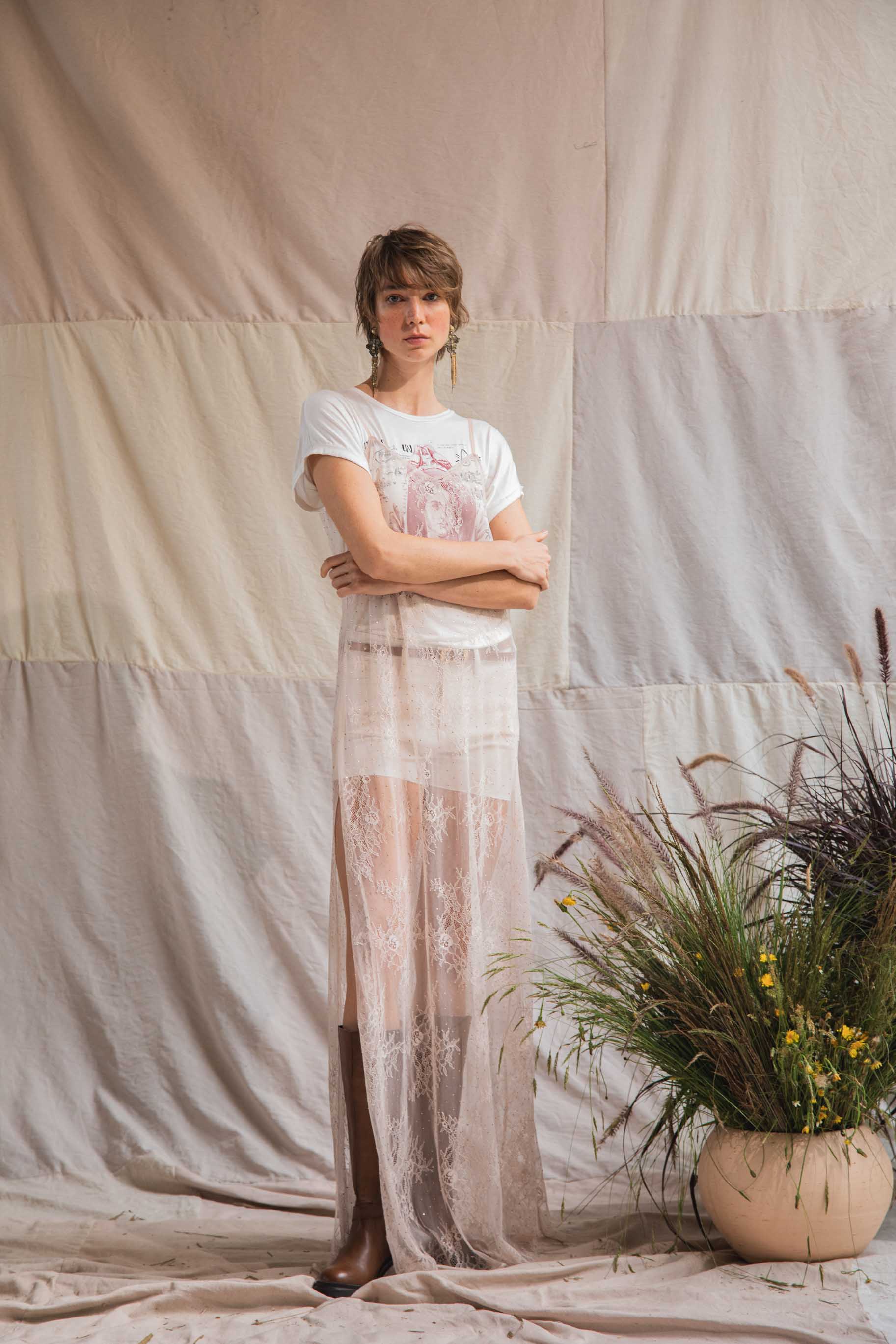 Translucent lace fabric – A delicate, sheer fabric made of 100% nylon